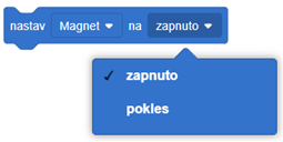 Nastavenie elektromagnetu robota VEXcode VR má len dva režimy: