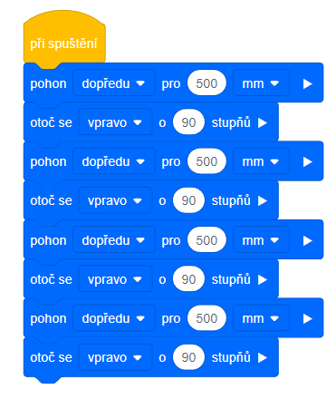 Vytvorte projekt tak, aby robot obišiel trasu v tvare štvorca.